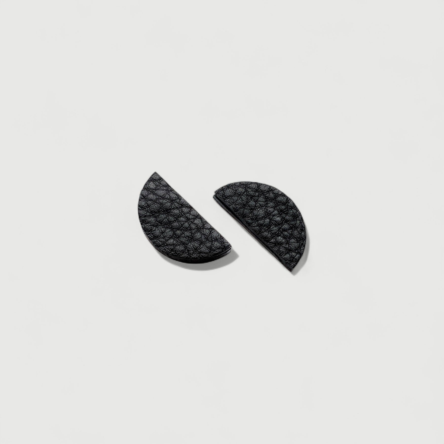 These black recycled leather earrings are a phenomenal addition to any look. Add some personality to this monochrome outfit. The simple yet bold semi-circle shape, along with the softest texture, exudes modern sophistication.