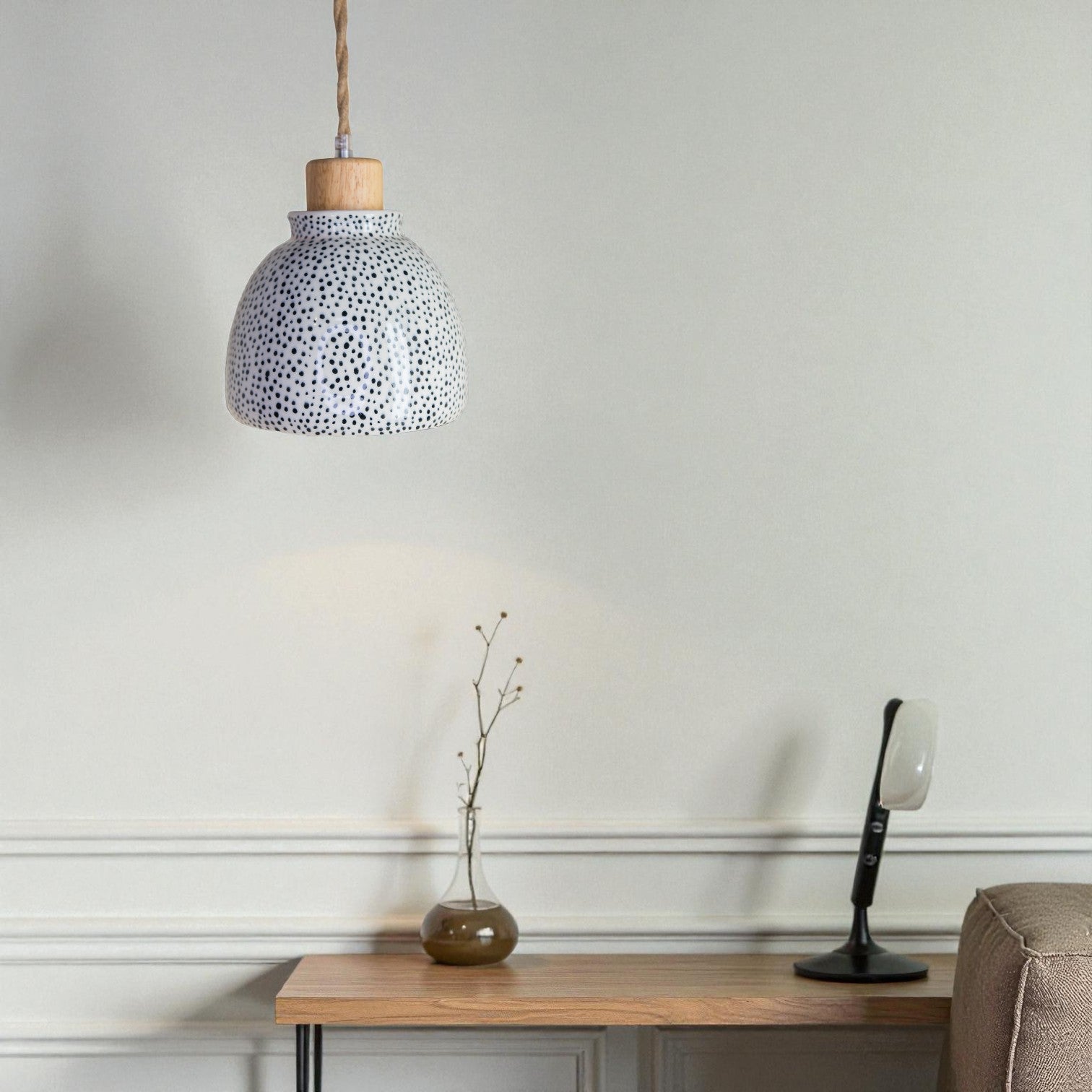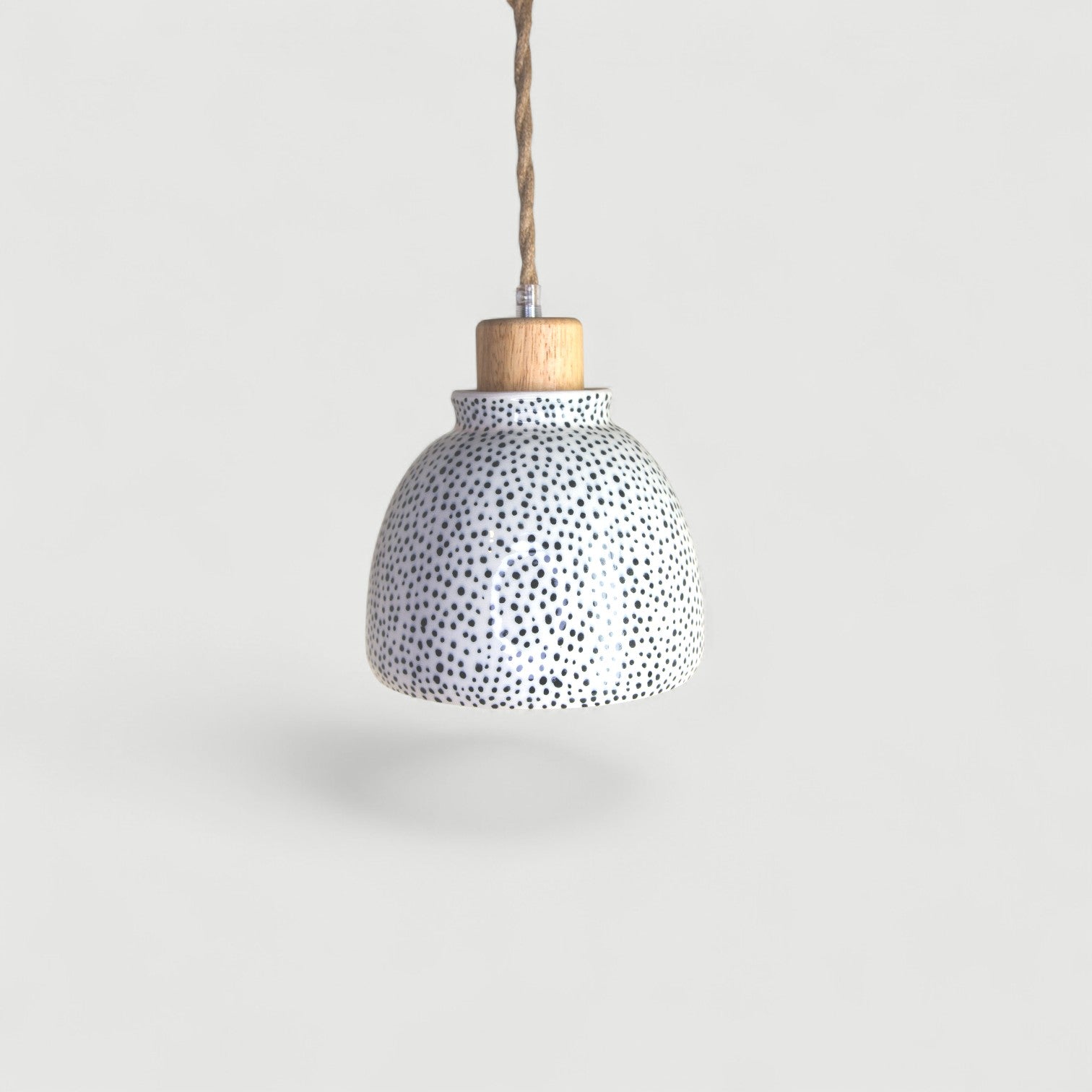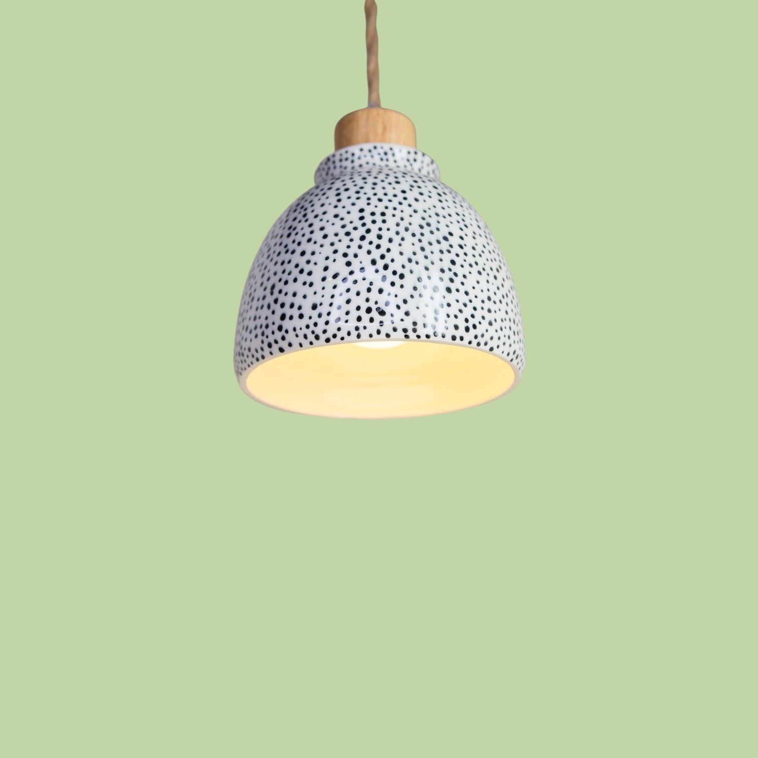 Luminaire en céramique artisanal qui rend hommage à l’univers vibrant de Yayoi Kusama, artiste japonaise connue pour ses motifs à pois et son exploration lumineuse de la santé mentale à travers l’art.